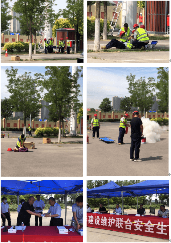 2020年6月16日上午,天津铁塔公司在西青区侯台湿地公园附近举行2020年建设维护联合安全生产应急演练活动。演练分为高处作业前施工准备、登高作业与高处坠落事故应急处置、高温中暑应急处置、应急发电与触电事故应急处置、消防灭火应急演练五个部分,9家入围施工、监理单位参加实操演练。此次演练由天津铁塔副总经理曲华维主持,天津铁塔公司党委书记、总经理钟伟参加并讲话,天津通管局党组书记、局长毕俊生到场督导并提出要求。